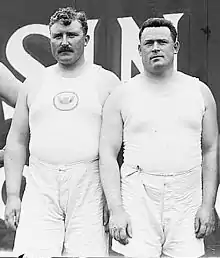 The Irish Whales or "The Whales" was a nickname given to a group of Irish, Irish-American and Irish-Canadian athletes who dominated weight-throwing events in the first two decades of the 20th century. "This group dominated the field events, particularly throwing events, at the Amateur Athletic Union national championships and at the Olympic Games between 1896 and 1924."[1] They were primarily members of the Irish American Athletic Club, and the New York Athletic Club and also members of the New York City Police Department. They were known as such because of their athletic prowess, physical size, voracious appetites, and their impact on a generation of sports fans.