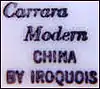 ![]() Iroquois China Company back stamp Carrara Modern White - Syracuse, New York - c.1955 |