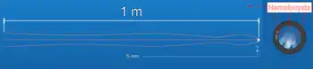 Irukandji jellyfish are very small, with a bell about 5 millimetres (0.20 in) to 25 millimetres (0.98 in) wide and four long tentacles, which range in length from just a few centimetres up to 1 metre (3.3 ft) in length.[18]