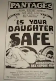 In San Diego, Millard was forced to retitle his film Is Your Daughter Safe? to The Octopus in order to meet the demands of city officials who found the title objectionable.[2][8] The film was described by Variety as "possibly the strongest and most dangerous" film of its kind at that point, but it still passed the standards of a group coordinated by the Motion Picture Producers and Distributors of America's Jason Joy, with the group initially stating that the movie taught "a very splendid lesson and that every girl over sixteen years of age ought to be compelled to see it."[4] The MPPDA, surprised at the lack of a condemnation, was eventually successful in gaining the condemnations from various women's groups and succeeded in withdrawing the film from a number of theaters in the Northwestern United States, paving the way for further challenges to the genre.[9] The success in San Diego led to the film being censored or banned in a number of other communities as time progressed, including persuading a Main Street theater chain in Seattle, Washington, not to run the film and drawing condemnation for Is Your Daughter Safe? and a number of similar films by the Motion Picture Theater Owners of America.