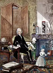 Portrait of the naturalist Laurentius Theodorus Gronovius with his two sons, Johannes and Samuel