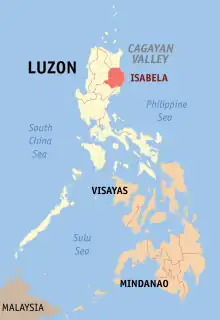 Isabela's 4th congressional district is one of the six congressional districts of the Philippines in the province of Isabela. It has been represented in the House of Representatives of the Philippines since 1987.[3] The district consists of the independent component city of Santiago and the municipalities of Cordon, Dinapigue, Jones, and San Agustin. It is currently represented in the 19th Congress by Joseph S. Tan of the Partido Federal ng Pilipinas (PFP).[4]