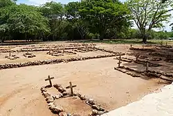 The first Mass was celebrated on 6 January 1494. The town included 200 thatch huts, a plaza, and Columbus' stone house and arsenal.[1]
