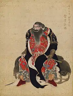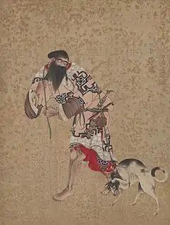 Ishūretsuzō (夷酋列像), also known as or A Series of Paintings of Ainu Chieftains[1]: 5 or Portraits of Ezo Chieftains,[2]: 9 is a series of twelve painted portraits, dating to 1790, of Ainu elders in the aftermath of the Menashi–Kunashir rebellion. They are by the Japanese artist and Matsumae Domain retainer Kakizaki Hakyō (1764–1826). Eleven of the twelve paintings survive, in the collection of the Musée des Beaux-Arts et d'Archéologie de Besançon. A number of preparatory drawings and copies are to be found in collections in Japan. The clothing worn and other accoutrements depicted help cast light on late eighteenth-century connections between the indigenous inhabitants of Ezochi, the Wajin, China, and Russia.[1][3][4] The portrait of Ininkari from the series also represents the earliest known documentation of brown bears (Ursus arctos) with white pelage, the so-called "Ininkari bears" that are to be found on Kunashir (Kunashiri) and Iturup (Etorofu) in the disputed Southern Kurils.[5]