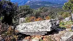 The ruined defensive wall is made of poor quality rectangular limestone blocks, and show signs of continual repair.[7][1] Within the walls at Isinda are wells and cisterns for collecting rain water. The most important remaining feature of the site is a house-tomb with an inscription wriiten in the ancient Lycian on the pediment.[1]