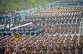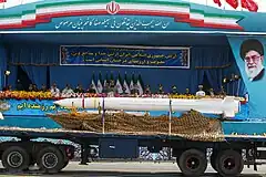 The Iranian government makes a show of military force on Iran Army Day with parades every 18 April, often demonstrating new defense technologies.[3][4] Army veterans, active servicemen and reservists, also take part in the annually held parade. The parade is held in front of the Mausoleum of Ruhollah Khomeini.[5]