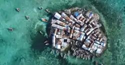This is a list of islands of Haiti. Most of The Republic of Haiti is situated on the western portion of Hispaniola, an island which it shares with the Dominican Republic. There are approximately 59 islands in Haiti making it one of the sovereign countries with the most island in the Caribbean. The islands are either in the Atlantic Ocean, Gulf of Gonave or Caribbean Sea (see map link). La Navase is disputed between Haiti and the US. Caye Sable is the most densely populated island in the world with up to 250 people sharing an area of just 0.16 ha (0.40 acres)