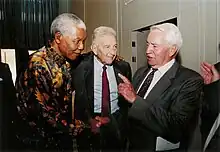 The sanctions remained in place until negotiations to end apartheid were underway in South Africa: on July 14, 1991, Israel lifted its sanctions, four days after the United States had done the same.[131] In November of that year, Botha's successor, F.W. De Klerk made a state visit to Israel, and he and Israeli Prime Minister Yitzhak Shamir agreed to normalise relations.[131] During that visit, the countries' foreign ministers – Pik Botha in South Africa and David Levy in Israel – signed a memorandum of understanding to facilitate increased cooperation in science, culture, industry, agriculture, tourism, commerce, and other fields.[123] Botha said publicly that neither the agreement nor general Israeli–South African relations would include military cooperation, because the latter "belong[ed] to the past".[123] Over the next two years, there was reportedly strain between the Israeli embassy in South Africa and De Klerk's government, as the Israeli ambassador focused his diplomatic and political outreach on the ascendant black leaders of the ANC.[132][133]