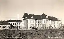 In 1936, the Ministry of Cults and Public Instruction banned religious education for Jewish students in state school buildings.[6] On 29 August 1940, the Gigurtu Cabinet limited the access of Jewish students to high schools and universities to 6%. The decree-law of 11 October 1940 excluded Jews from all state schools, but left open the possibility of establishing their own primary and secondary schools, with exclusively Jewish teachers and students.[10][11] Under these conditions, the Israelite High School in Timișoara continued its activity during the Antonescu regime, receiving students excluded from other schools.[4] But in the autumn of 1940, the high school building was requisitioned. In 1941, the German military hospital was installed upstairs. In 1942, the entire high school was evacuated, the building becoming the headquarters of the Timișoara Police Headquarters. The courses of the boys' high school continued in the premises of the Israelite Primary School in Fabric (1 Ion Luca Caragiale Street) and in the premises of the Fabric Synagogue, of the commercial high school in the yard of the Fabric Synagogue, and of the girls' gymnasium in the community premises (5 Gheorghe Lazăr Street) or in different private homes.[5] Some of the students, born in 1925, were sent to work detachments as early as April 1943. However, they did not drop out of school, but continued to attend classes in the hours after work. The school, in turn, facilitated this by the fact that the lessons were scheduled after 2 p.m.[4]