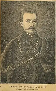 Baron István Andrássy de Csíkszentkirály et Krasznahorka (1650–1720) was a Hungarian Kuruc general and nobleman, member of the old aristocratic Andrássy family. He was a supporter of Imre Thököly in the 1680s, and later joined Francis II Rákóczi in November 1703 during Rákóczi's War for Independence. He became commander of the Kuruc armies in the areas between Danube and Tisza (in Hungarian: Duna-Tisza köze).