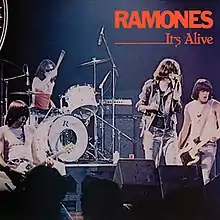 It's Alive is the first live album by the American punk rock band the Ramones, titled after the 1974 horror film of the same name. It was recorded at the Rainbow Theatre in London on December 31, 1977, and released in April 1979 as a 2-LP set. The album draws from the band's first three studio albums: Ramones (1976), Leave Home (1977), and Rocket to Russia (1977). Four concerts during the UK tour were recorded, but the New Year's Eve one was chosen because ten rows of seats were thrown at the stage after the concert and it was considered the best of the performances at the venue.