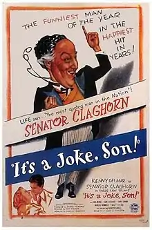 It's a Joke, Son! is a 1947 American comedy film directed by Benjamin Stoloff (in his final directorial role in a film) featuring radio comedian Kenny Delmar as Senator Beauregard Claghorn, the inspiration for the cartoon character Foghorn Leghorn.[2] The film was the first American production for Eagle-Lion Films[3] and although it was produced on a very small budget compared to other Hollywood films,[1] it was a box-office disappointment; one theater chain removed the film after less than a week after it only drew $1,000 in ticket sales.[4]