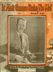 "It Ain't Gonna Rain No Mo'" or "It Ain't Gonna Rain No More" is a song by "The Red-Headed Music Maker", singer and instrumentalist Wendell Hall (1896–1969). Ukulele arrangement on the song was by May Singhi Breen.[1] Hall's 1923 recording of it was a hit in the US and also in Britain, where it was sung during the 1925 FA Cup final by Sheffield United supporters, making it a popular football song of the era.