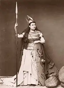 The phrase is generally understood to be a reference to opera sopranos, who were typically heavyset.[2] The imagery of Wagner's opera cycle Der Ring des Nibelungen and its last part, Götterdämmerung, is typically used in depictions accompanying uses of the phrase. The "fat lady" is thus the valkyrie Brünnhilde, who was traditionally presented as a very buxom lady. Her farewell scene lasts almost twenty minutes and leads directly to the finale of the whole Ring Cycle.[3] As Götterdämmerung is about the end of the world (or at least the world of the Norse gods), in a very significant way "it is [all] over when the fat lady sings."