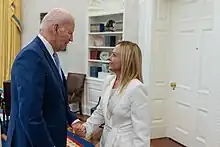 US President Biden and Italian Prime Minister Giorgia Meloni in the oval office on July 27, 2023