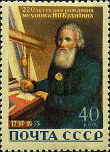 Ivan Petrovich Kulibin (April 21, 1735 – August 11, 1818) was a Russian mechanic and inventor. He was born in Nizhny Novgorod in the family of a trader. From childhood, Kulibin displayed an interest in constructing mechanical tools. Soon, clock mechanisms became a special interest of his. His realizations as well as his prolific imagination inspired the work of many.