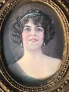 ![]() De Verley with a "life mask" of her husband, 1920 | |