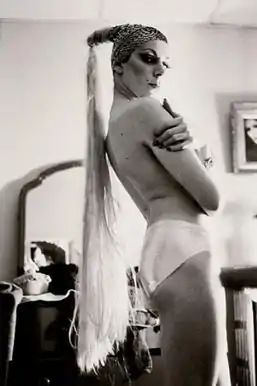 When she was 19, Goldin lived in downtown Boston where she began documenting her life in the subcultural community she made home.[4] It was during her time there that her interest in photography solidified.[2] She frequented The Other Side, a drag bar, where she became acquainted with the drag queens and transsexuals who later became the principal subjects for her photographs.[6]