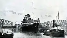 | Engines: | Three triple-expansion steam engines 2 × 2,500 ihp (stern); 2,600 ihp (bow) |
