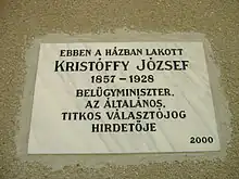 Memorial tablet of Kristóffy (Makó, birthplace)