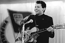 While a student[4] in 1966 he met a girl on the train to Leipzig who, after they became friends, gave him her unwanted guitar. He already had a musical background, and when, following the customs of that time, during the long summer break the two of them went off to the countryside to help with the harvest, they came across more friends who taught him the basic guitar chords. Shortly afterwards he was invited to join in the regular "Hootenannys" at the "Club International" above the Kino International in Berlin's Karl-Marx-Allee. It was from these beginnings that he became a co-founder of the "Hootenanny-Klub", a political singing group with a difficult name that was quickly rechristened as the October Club, becoming known for a mixture of popular and chanson style songs, folk and Rock music.[2] Their performances were largely informal and unplanned. Many of Pippig's first contributions involved French chansons that he had first encountered in the context of his university studies. There was a consciously political element, with a focus on singing western protest songs from performers such as Joan Baez, Pete Seeger, Woody Guthrie und Bob Dylan, whom he would later identify as among their role models. Western music more generally was fashionable at the time, and they also sang songs by The Beatles.[2]