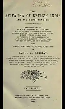 • Murray, J.A. (1888) Indian Birds or the Avifauna of British India. Vols. 1-2. London: Trubner & Co.