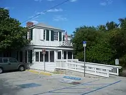 The house has a two-story, wood-frame structure, and was originally constructed as a single-family residence. Built in 1936, during the Depression as a seasonal residence, the construction represents what locally is known as Resort Colonial Style. It has an irregular floor plan and was built on a concrete slab foundation. The first story has horizontal clapboard, and the second story is board and batten. The house has a composition-shingled complex hip roof that is low-pitched and has a brick chimney in the center. The windows are filled with 6/6 double-hung wooden sashes which are protected by operable louvered shutters.