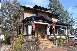 The J.H. Gakey House in Boise, Idaho, is a 2-story brick Bungalow designed by Tourtellotte & Hummel and constructed by Lemon & Doolittle in 1910. The house features a sandstone foundation and a hip roof with attic dormers. Lintels and window sills are trimmed with stone. The house includes a large, cross facade porch with square posts decorated by geometric ornaments below the capitals. The Gakey house was added to the National Register of Historic Places in 1982.[2][3]