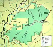 The Nickel Family Preserve is located in the forested and rocky Cookson Hills region of eastern Oklahoma. Elevations on the refuge range from 850 feet (260 m) to 1,250 feet (380 m).[1] The preserve was founded in 2000 due to a land gift from the John Nickel family. It is the largest privately owned conservation area in the Ozark Mountains.[2]