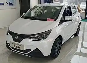 Originally called the EV2 under the EVeasy sub-brand, it has five doors and can accommodate four people.[5] The dashboard is rudimentary, the console having buttons dedicated to the air conditioning and the audio system without a touch screen.[2] with a CLTC pure electric cruising range of 175 km (109 mi).