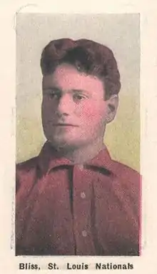 John Joseph Albert Bliss (January 9, 1882 – October 23, 1968) was a professional baseball player. He played all or part of five seasons in Major League Baseball, from 1908 until 1912, for the St. Louis Cardinals, primarily as a catcher. He spent most of his career as a reserve, but was the Cardinals' primary catcher in 1911.