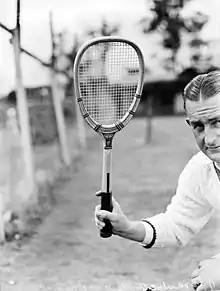 Crawford in 1933 holding his characteristic Alexander 'Cressy Wizard' flat-topped racket