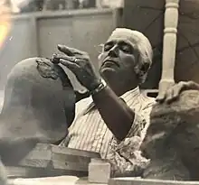 Jack Edward Barber was born in Arkansas City, Kansas, but raised in Ponca City, Oklahoma. After graduating from Ponca City High School, Barber attended the Kansas City Art Institute from 1938-1940, where he studied painting under Thomas Hart Benton, lithography under John de Martelly, and sculpture under William Wallace Rosenbauer. As was the case for many of his students, Benton's influence on Barber's art was significant and life-long. Barber often spoke about being a student in Benton's classes, and his perspective of Benton as a teacher was solicited for inclusion in several books about Benton.[2][3] In 1993, two of Barber's paintings were part of a special exhibit sponsored by the Albrecht-Kemper Museum of Art. Following the exhibit, both of Barber's paintings and one of his lithographic prints were included in a book, Under the Influence: The Students of Thomas Hart Benton.[4] Barber later continued his art education by earning Bachelor of Fine Arts degree at Whitworth University, and a Master of Fine Arts (MFA) degree at Brigham Young University.