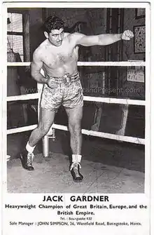 Jack Leonard Gardner (6 November 1926 – 11 November 1978) was a British heavyweight boxer. He was the Heavyweight Champion of Great Britain, the British Empire, and Europe. Gardner was a top ten contender for the Heavyweight Championship of the World and retired with a record of 28 wins, 23 by knockout, and 6 losses, a total of 34 fights.