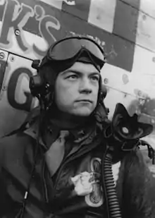 Jack Milton Ilfrey (July 31, 1920 – October 15, 2004) was a United States Army Air Forces fighter ace who was credited with shooting down seven and a half enemy aircraft during World War II and evading capture twice.[1][2] Ilfrey was known as Happy Jack for his cheerful disposition, and his ground crews in England nicknamed each of his planes "Happy Jack's Go Buggy".[3]