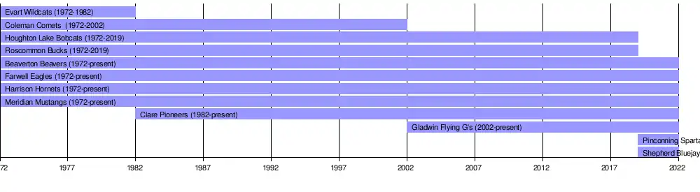 On June 29, 2023, it was announced starting for the 2024–25 academic year four schools will join the JPC. These four schools being Ogemaw Heights, Standish-Sterling, St Louis and Bullock Creek.
