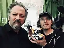 Sargeant (left) and Johannes Grenzfurthner at monochrom office (Museumsquartier, Vienna), 2018