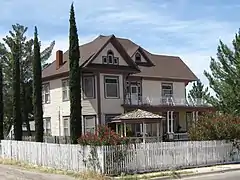 The Jackson House is a historic Queen Anne-style house in the vein of Victorian Architecture. It is located at 1700 Ninth Street in Alamogordo, Otero County, New Mexico. It was built in 1896 by A.P. Jackson. A.P. Jackson was on the commission to select the site for the Institute of the Blind in Alamogordo. Being the President of the Jackson-Galbraith-Foxworth Company, dealers in lumber in Alamogordo. He had been one of the most active business men of the town since its establishment in 1898, and his efforts had been of a practical beneficial nature, far-reaching in their extent, scope and results. He was a native of Texas, having been born in Denton county in 1866. He was reared to farm life and educated in the public schools. In 1892, he became connected with the lumber trade, and from that time until 1898 operated lumber yards in Texas. Upon the founding of the new town of Alamogordo he embarked in business there in June, 1898. He had a stock of lumber shipped to this point and unloaded from the first train entering the town. He was there two months before the railroad was built.[2]