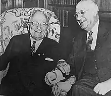 President Truman appointed Blaustein to serve on his National Advisory Board on Mobilization Policy during the Korean War, which met in the Cabinet Room of the White House.[38] President Truman became a close personal friend of Blaustein,[39] often asking him to report directly to him after his foreign trips and advise him on international and domestic issues.[40][41] In the fall of 1945, President Truman made a personal visit to the Blaustein's Baltimore farm and estate, Alto Dale.[42]