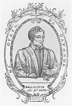 - ↑ (in French) Lucien Pinvert. Jacques Grévin, 1538-1570: étude biographique et littéraire, p.21 at the Internet Archive