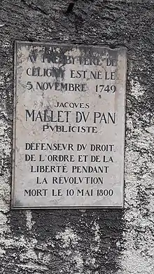 - ↑ Jacques Mallet du Pan, in the Historical Dictionary of Switzerland.