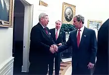 U.S. Secretary of State Colin Powell meets with SRSG Klein at the Sarajevo Airport in 2002