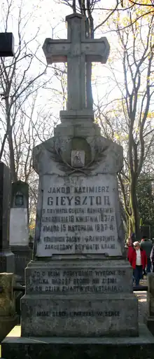 Jakób Gieysztor (Lithuanian: Jokūbas Geištoras; 18 April 1827 – 15 November 1897) was a Polish-Lithuanian nobleman and politician who participated in the January Uprising of 1863. Gieysztor was also an antiquarian, publicist, and one of the leaders of the Whites political group in Lithuania. He has published his memoirs of his participation in the uprising and the subsequent deportation to Siberia.[1]