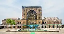 The Jama Mosque is one of the three most famous mosques in Jaunpur, the others being the Atala Mosque and the Lal Darwaza Mosque. Of these it is both the largest and most recent. The Jama Mosque and the Lal Darwaza Mosque are heavily based upon the model of the Atala Mosque. According to Michael S. Dodson the focus of this style is the enormous and visually dominating pishtaq (portal) which obscures the dome behind it.[24] All mosques in this style are arranged around a courtyard with four large gateways facing North, South, East, and West. The most significant of these faces West (towards Mecca) and contains the pishtaq and dome.[25]