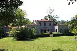 The James Arthur Morrison House, also known as the Morrison-Walker House, is a historic Spanish Colonial Revival style house and garage/guest house in Mobile, Alabama, United States. The two-story stucco and concrete main house was completed in 1926. It features Mission-style side parapets on the main block, red tile roofing, a central entrance courtyard with a decorative gate, a rear arcaded porch, and arched doorways on the exterior and in the interior.[2] The matching garage/guest house has a two-story central block with a massive chimney and is flanked to each side by one-story garage door bays. The house and garage were added to the National Register of Historic Places as a part of the Spanish Revival Residences in Mobile Multiple Property Submission on July 12, 1991.[1]