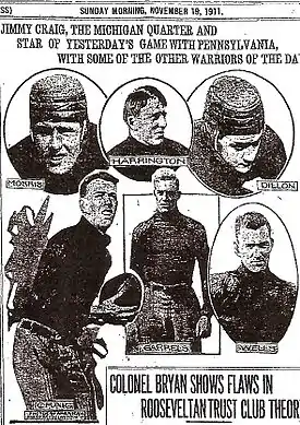 9. 1 2 3 "Pennsy Beaten in Close Game: Michigan, Aided Greatly by Craig, Wins by a Margin of Two Points". The New York Times. 1911-11-19.