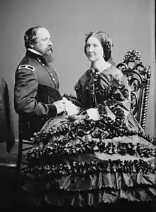 In July 1864, Ricketts and his command, numbering only 3,350 men, were hurried north to oppose Jubal Early's attack on Washington, D.C. Ricketts fought at the Battle of Monocacy under Major General Lew Wallace, suffering the heaviest losses while holding the Union left flank. For his service there, on December 12, 1864, President Lincoln nominated Ricketts for appointment to the brevet grade of major general of volunteers, to rank from August 1, 1864, and the U.S. Senate confirmed the appointment on February 14, 1865.[3] Ricketts was engaged in Philip Sheridan's Shenandoah Valley Campaign. At the Battle of Cedar Creek, he commanded the VI Corps in the initial hours of the fighting but was wounded by a Minié ball through his chest that disabled him for life. Despite his poor health, he returned to command of his division two days before Robert E. Lee's surrender at Appomattox Court House, April 9, 1865.