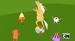 - ↑ Muto, Adam (supervising director); Nick Jennings (art director); Pendleton Ward & Somvilay Xayaphone (storyboard artists) (May 6, 2013). "James Baxter the Horse". Adventure Time. Season 5. Episode 19. Cartoon Network.
