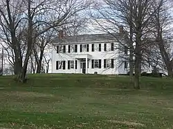 Besides the house, early buildings on the property include an original outhouse and a spring house. The property also included an early barn and miscellaneous multi-purpose building, but these two structures were removed in 1959.[2]: 2 Today, the house lies along Chapel Drive southeast of Ellwood City; its prominent hilltop location makes it visible to the south and east to a distance of several miles. Although a modern residential subdivision is located along Chapel immediately to the north of the Clow property, it retains much of its historic integrity amid a primarily rural setting.[2]: 2, 3, 14 This places it in contrast with most period wooden Greek Revival farmhouses in rural Beaver and Lawrence counties: nearly all surviving examples of this type of architecture have been heavily modified.[2]: 6 Only one other Greek Revival house in Beaver County is listed on the Register — the William B. Dunlap Mansion in the borough of Bridgewater in the central part of the county — and the county's only other 19th-century farmhouse on the Register is the David Littell House in the county's far south.[1]