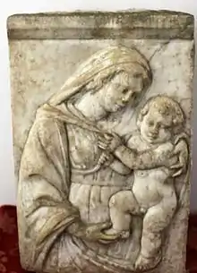 A round marble 36 cm representing the portrait of Michelangelo Buonarroti discovered by James Beck was reported in the "Michelangelo Assoluto" Scripta Maneant Editions of 2012 by Alessandro Vezzosi and presentations by Claudio Strinati.[2][3] Beck's discovery of a marble relief of the Madonna di Agliano by Jacopo della Quercia is mentioned in "Studi di storia dell'arte in onore di Mina Gregori" by Miklos Boskovits.[4]